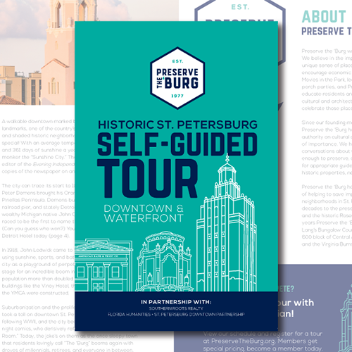 With Preserve the 'Burg's Self-Guided Tour Book - included in your tournament bag - history follows you wherever you go! Explore famous landmarks and local treasures while reading some of our favorite stories from the past. With this guide, you'll be able to take a tour of Downtown St. Pete on your own time and discover 48-pages worth of places that make St. Pete special.